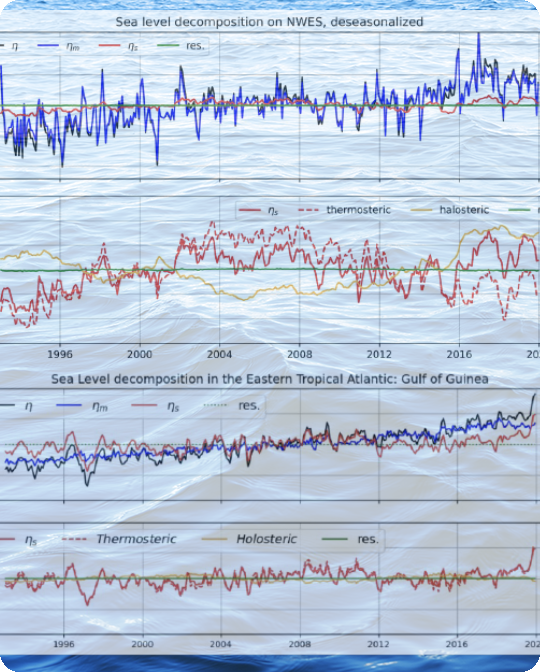 - Eastern tropical Atlantic (Gulf of Guinea): steric dominates the total variability, while manometric contributes to long-term trends