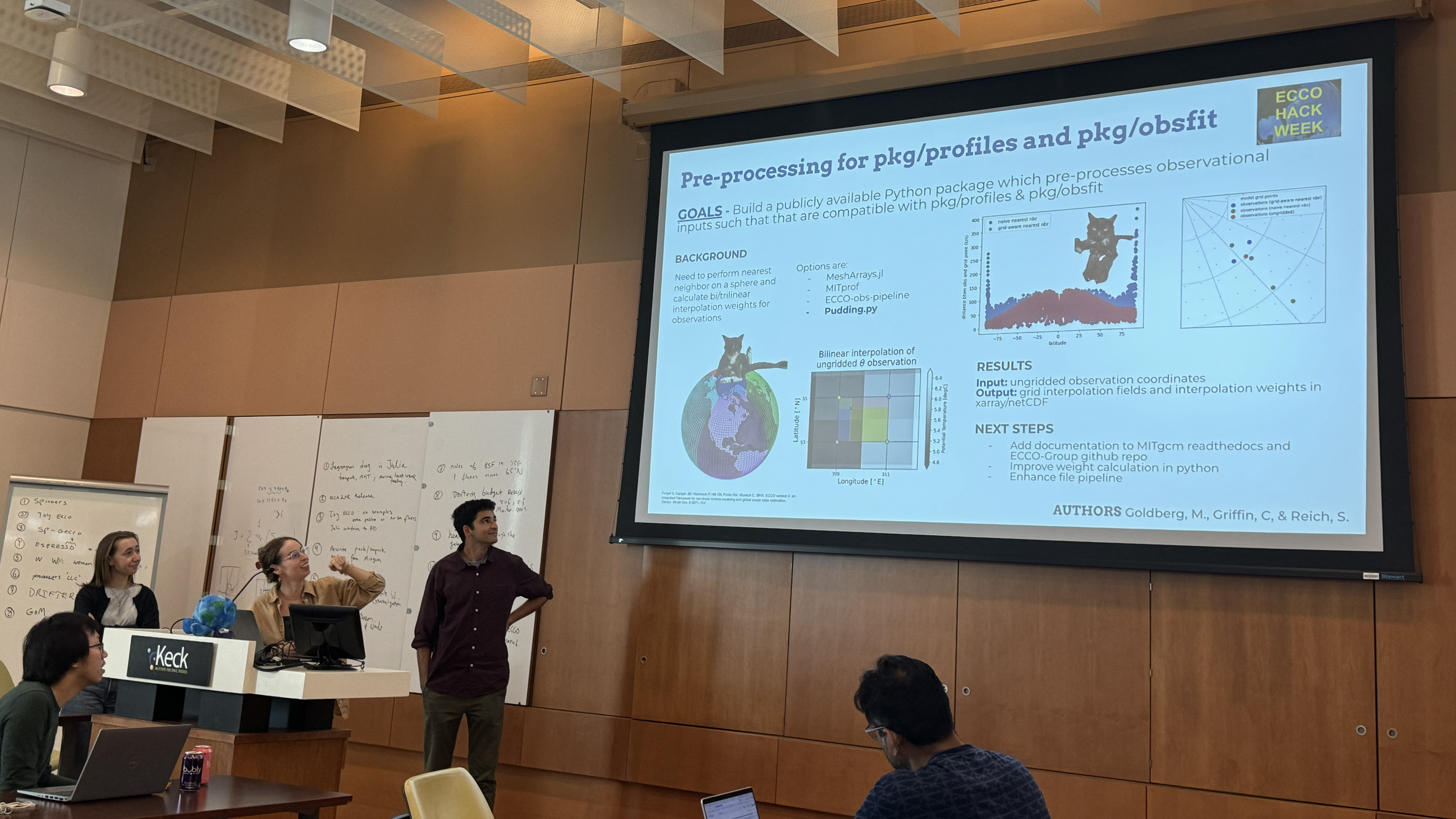 Participants learned how to access and utilize ECCO V4 global ocean and sea-ice state estimates for various ocean and climate analyses. Instructors introduced participants to a Python library (ecco_v4_py) and a set of Python Jupyter Notebook Tutorials specifically designed for ECCO data analysis, enabling them to perform sophisticated evaluations and visualizations. They worked on team projects that focused on different kinds of analysis of ECCO estimates, including comparisons with data. Archive of overview presentations >>